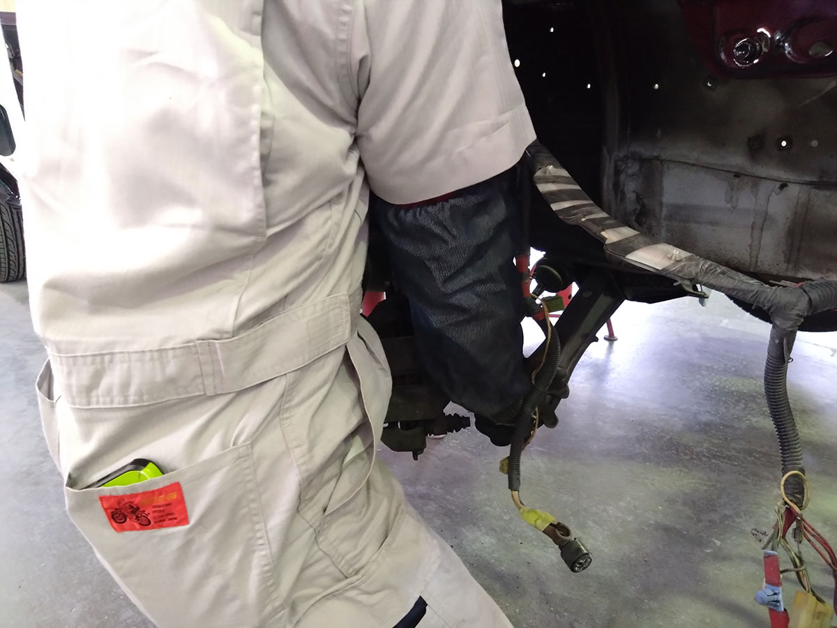 早速作業開始です。「トヨタ AE86(ハチロク)」車体をジャッキアップし