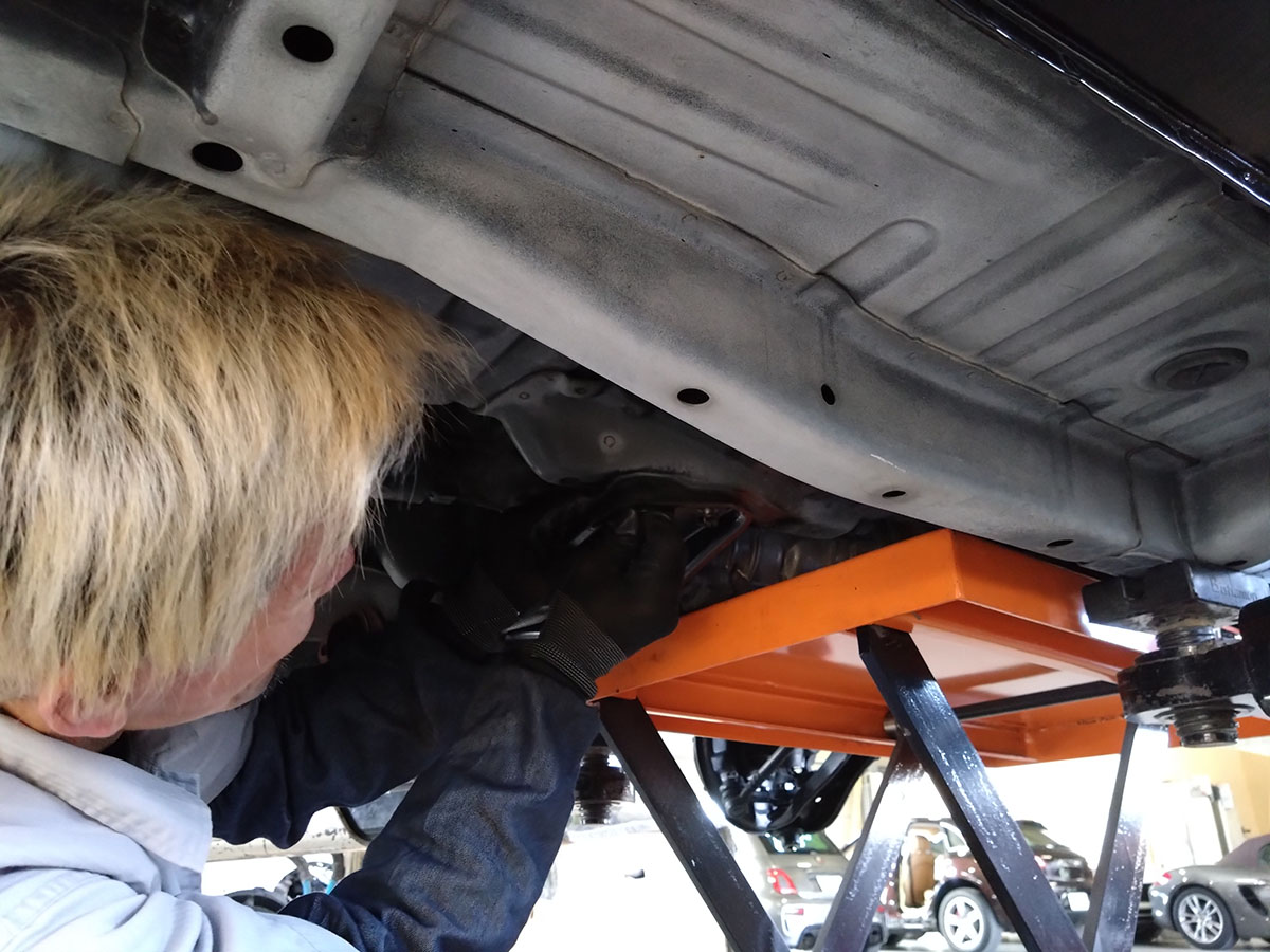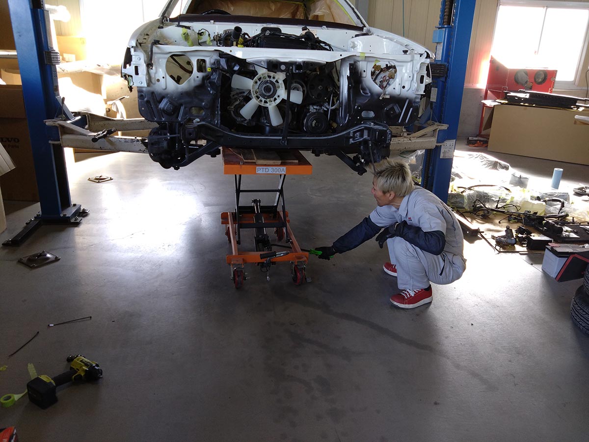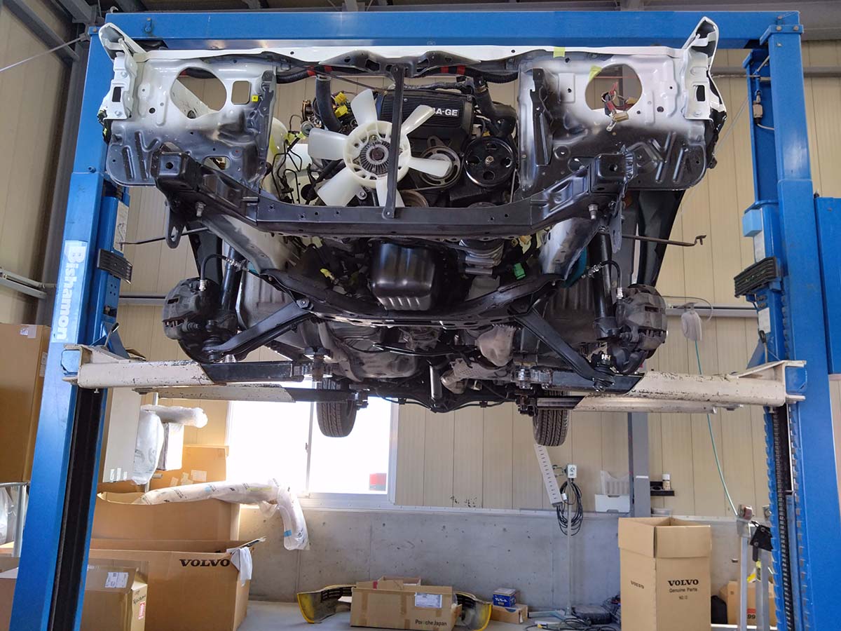 リフトが上がっていますので、この状態で下回りの作業も進めていきます。