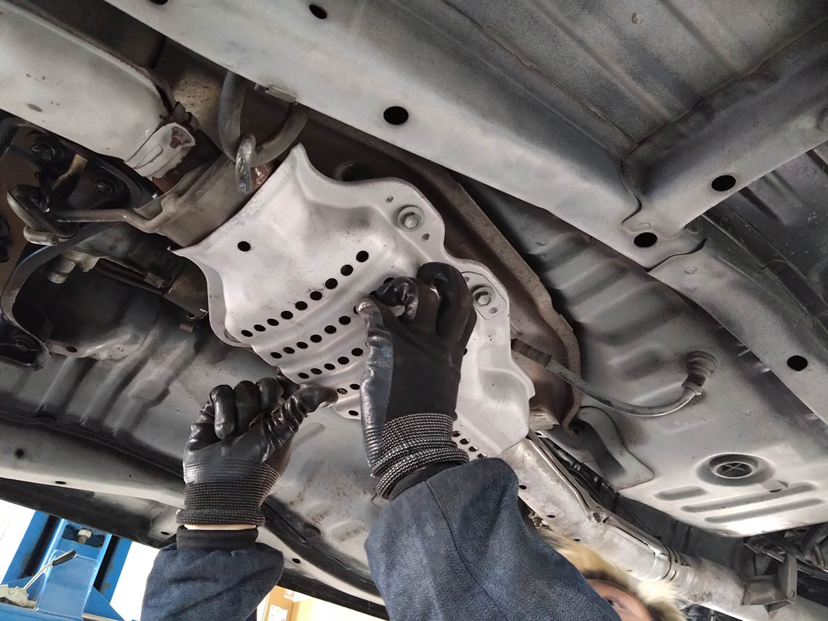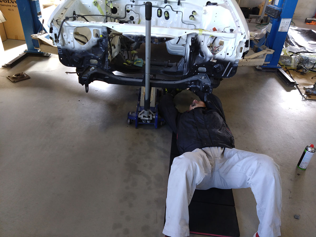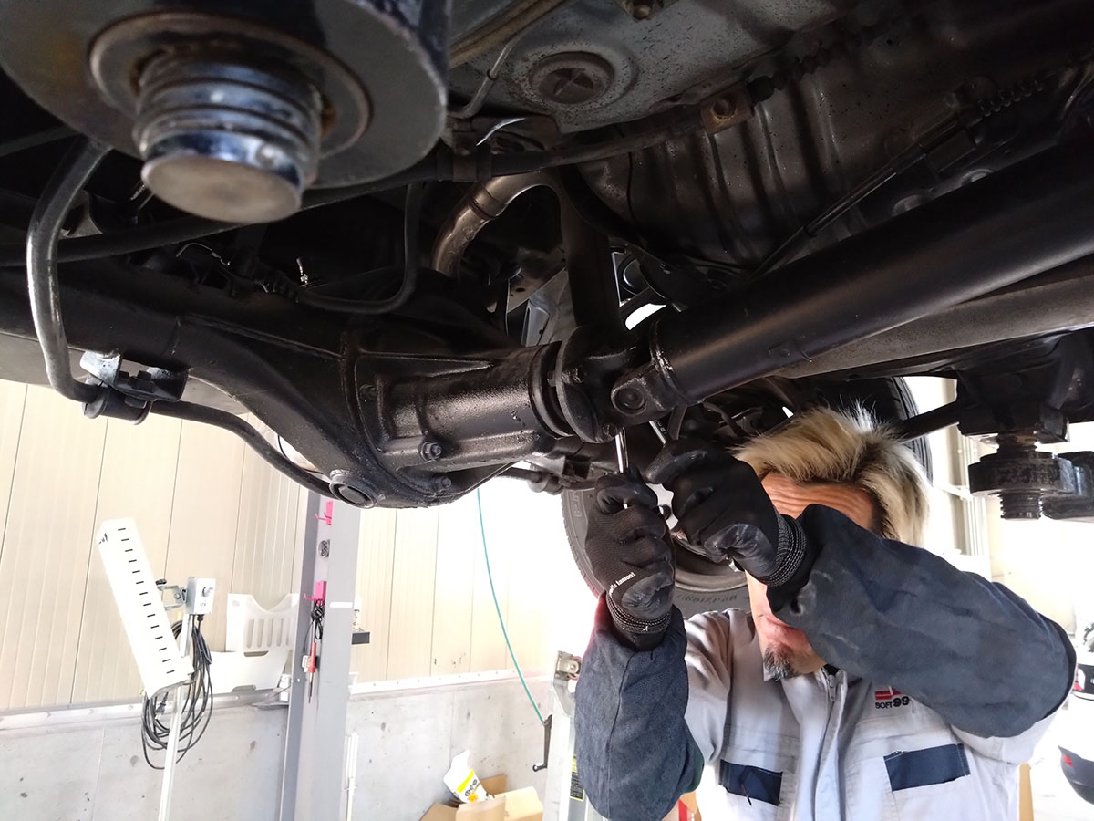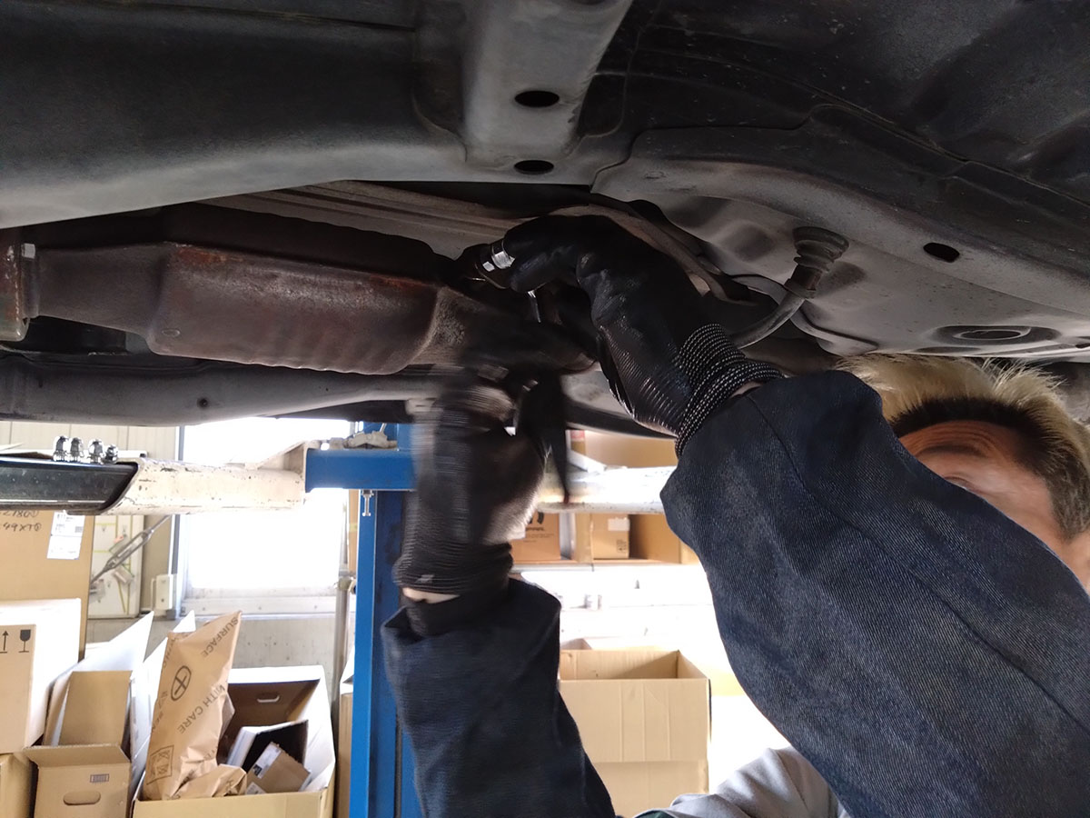 リフトが上がっていますので、この状態で下回りの作業も進めていきます。