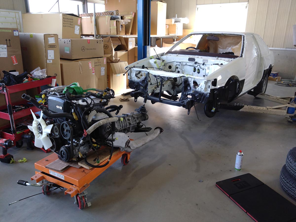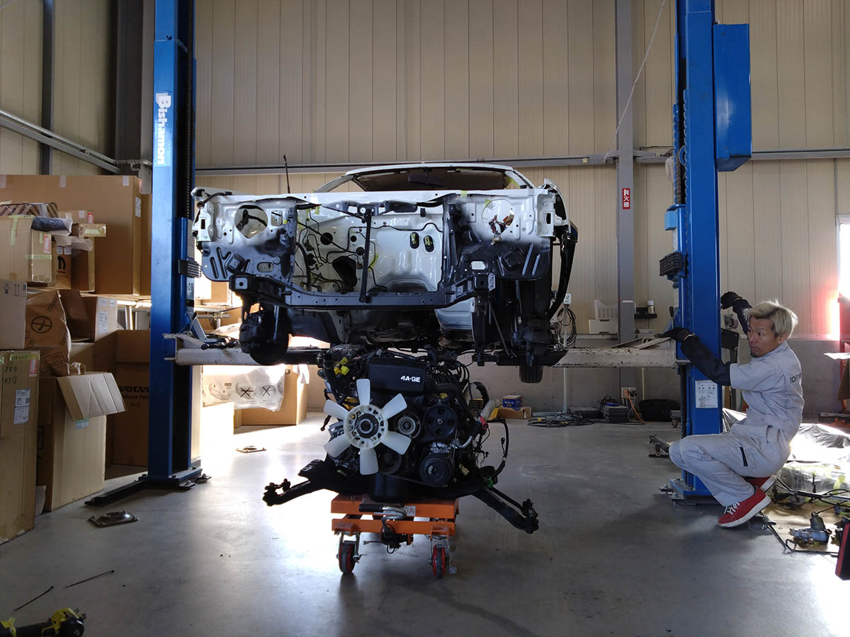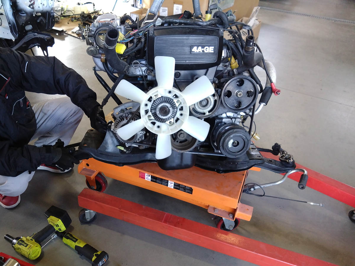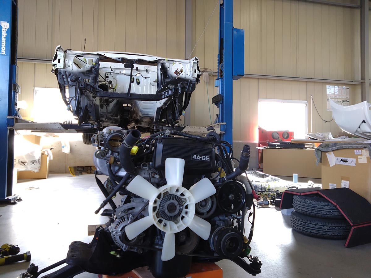 皆さんこんにちは、前々回にエンジンとトランスミッションの合体が完了した「トヨタ AE86(ハチロク)」。