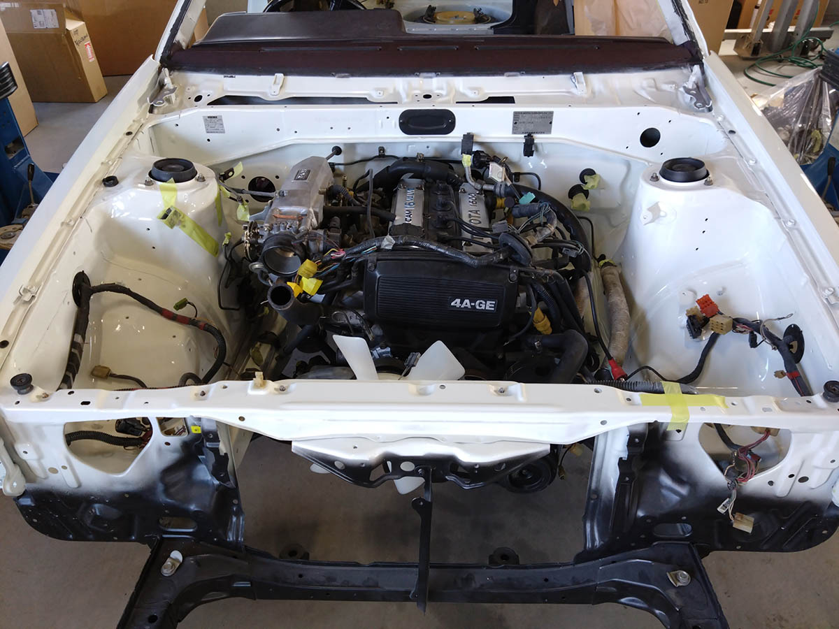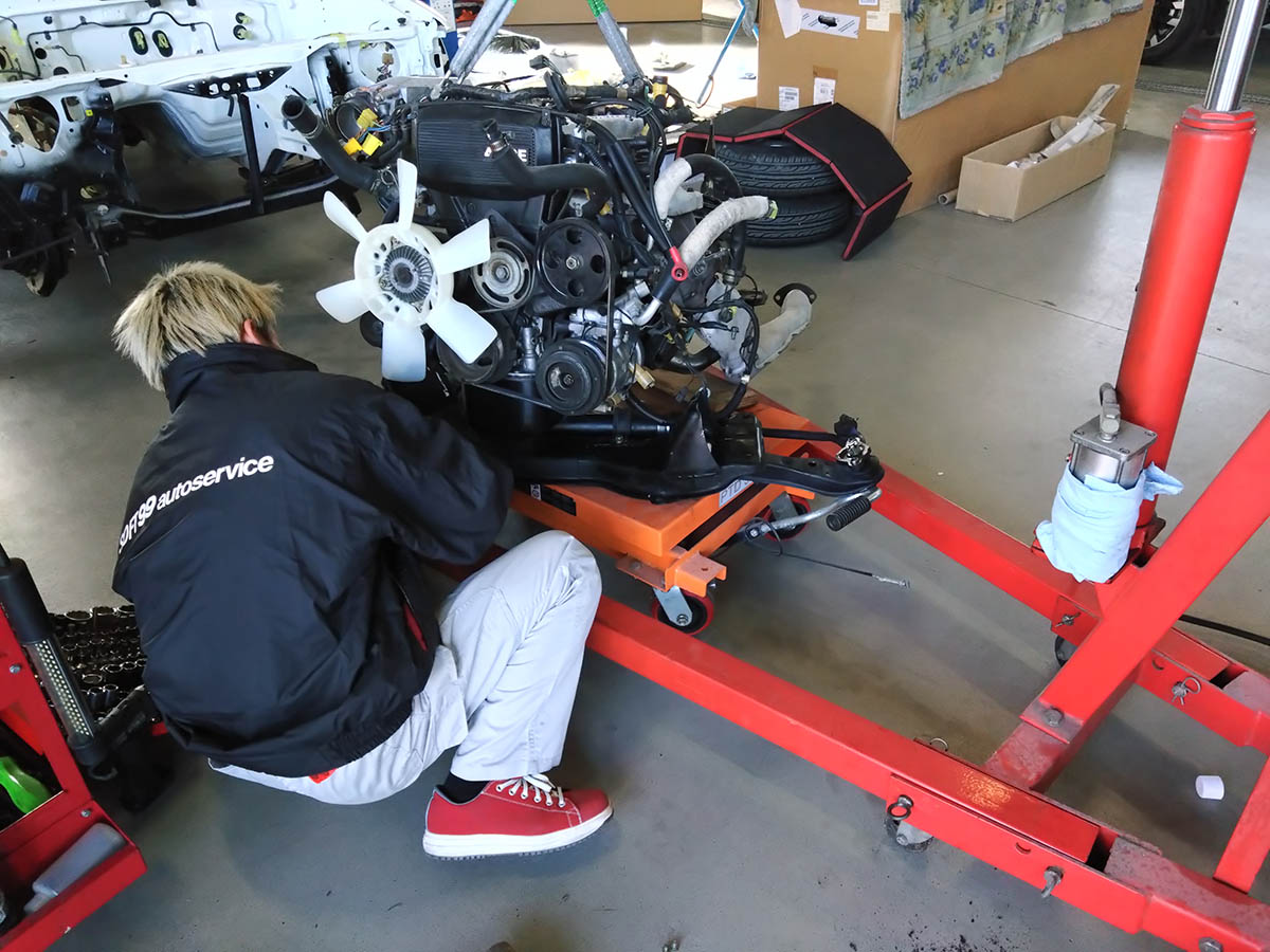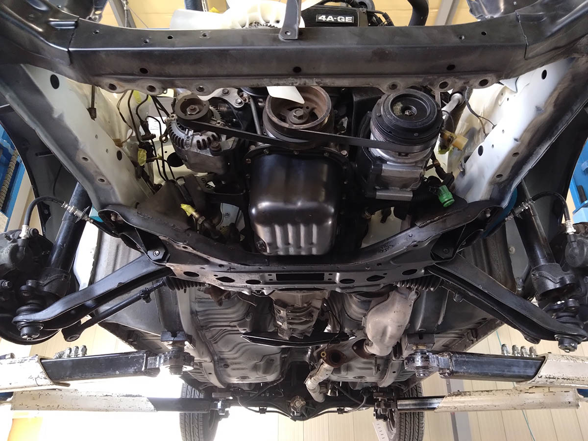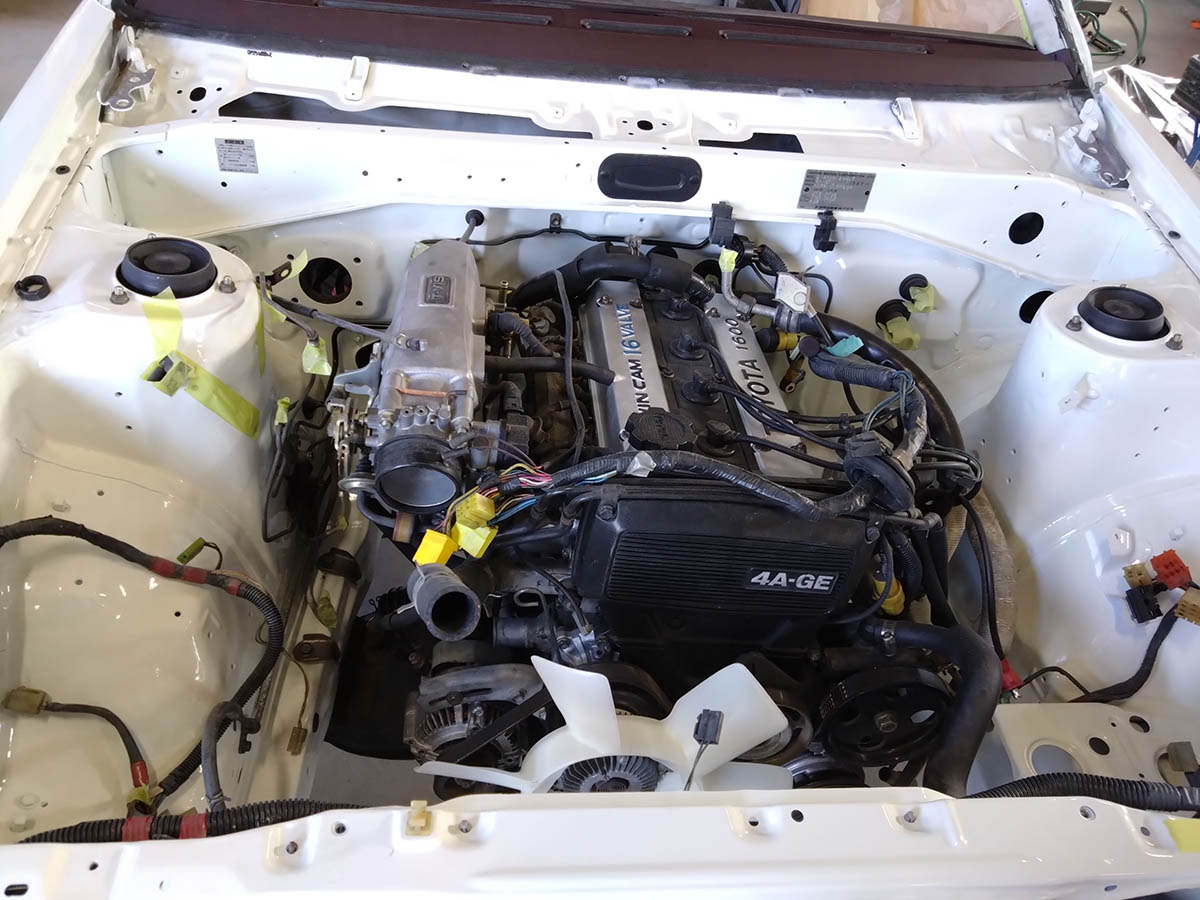 皆さんこんにちは、前々回にエンジンとトランスミッションの合体が完了した「トヨタ AE86(ハチロク)」。