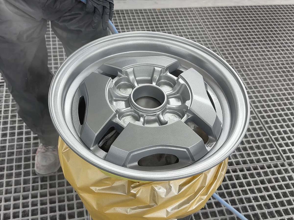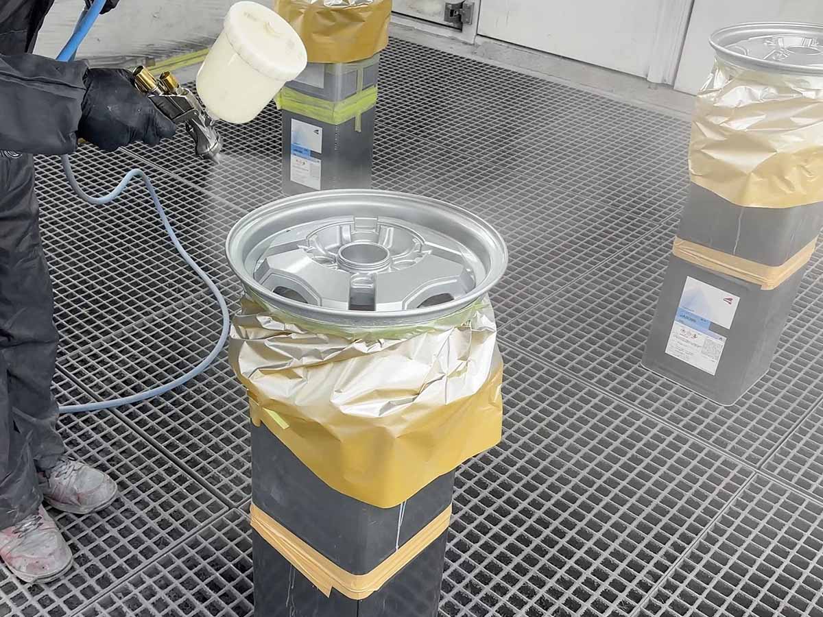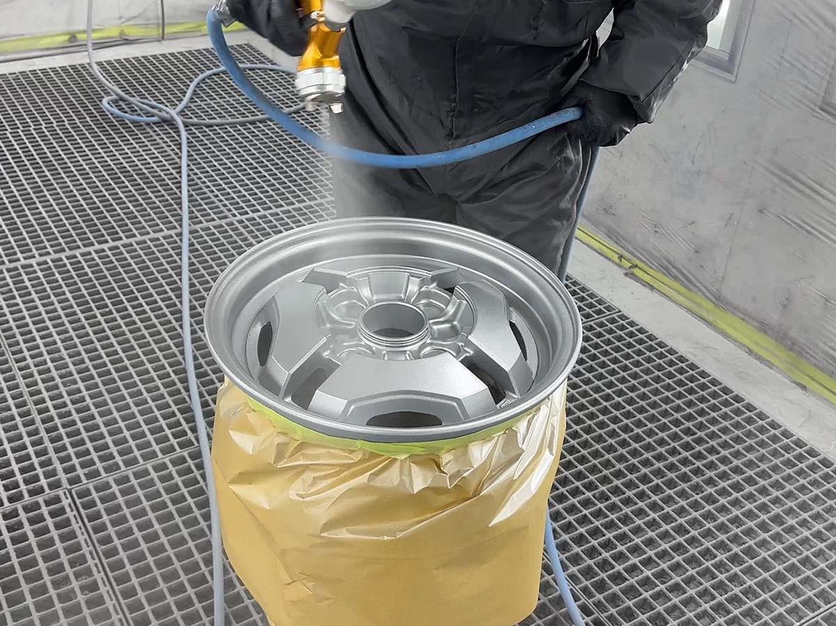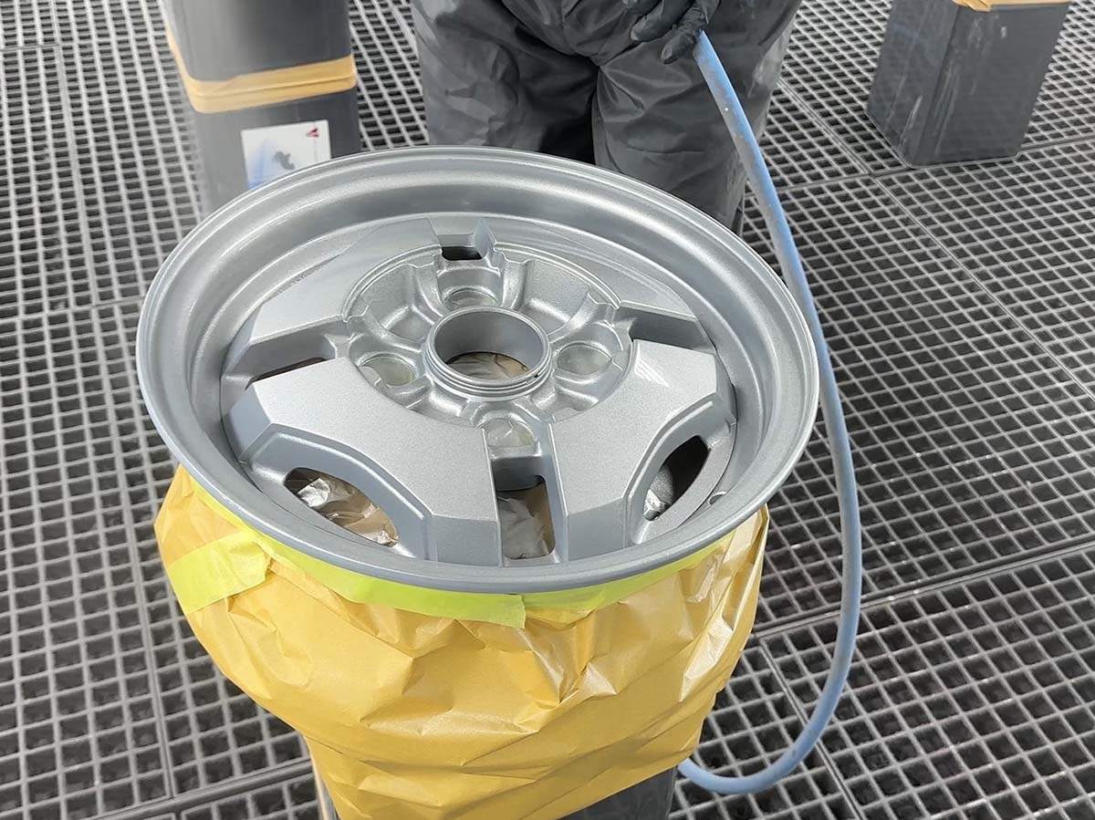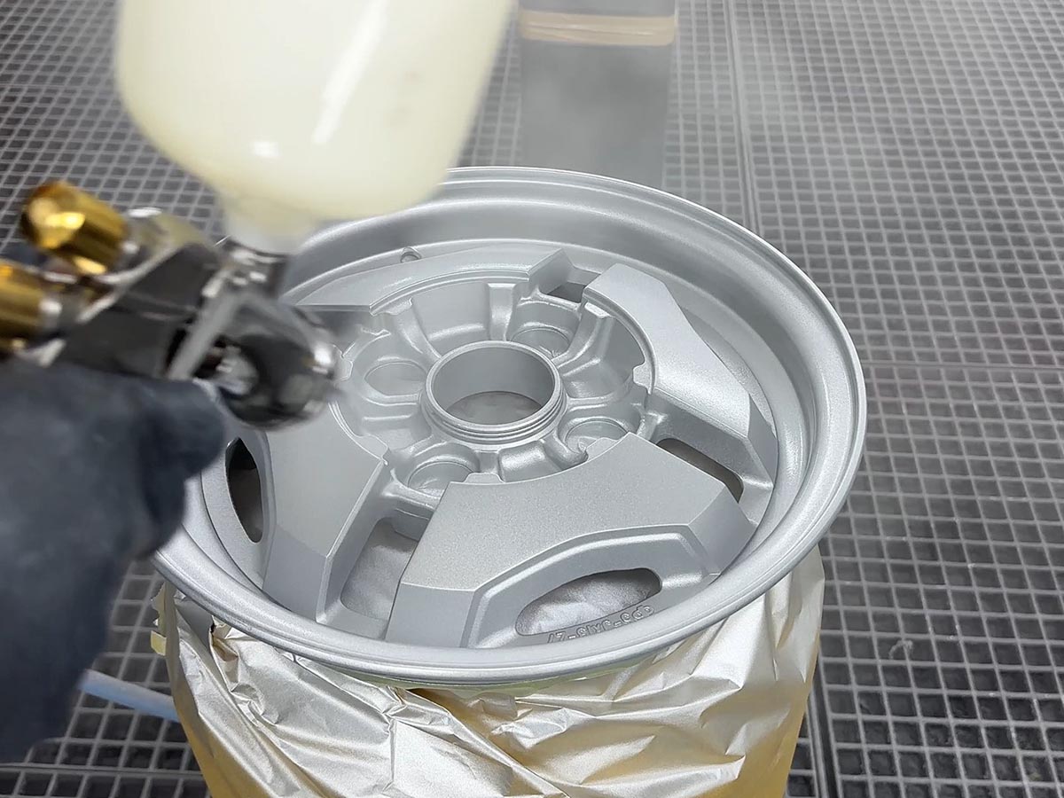 ホイールのカラー塗装は2度塗りで仕上げていきます。