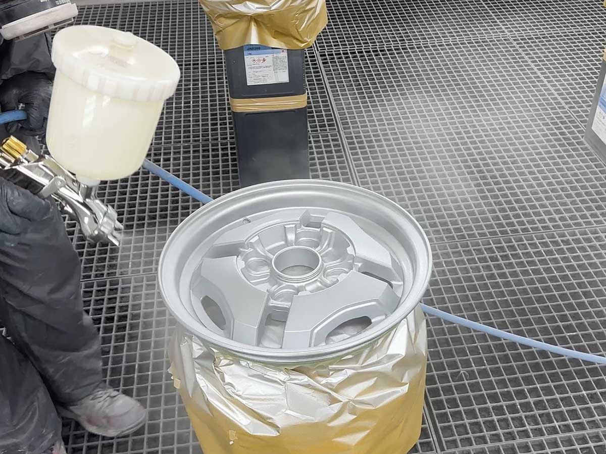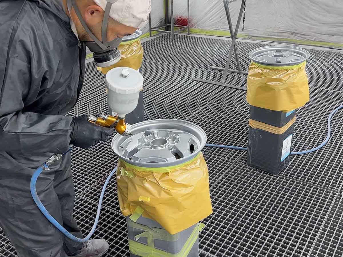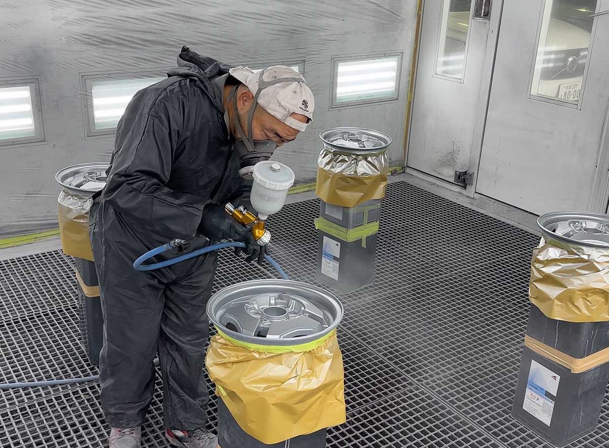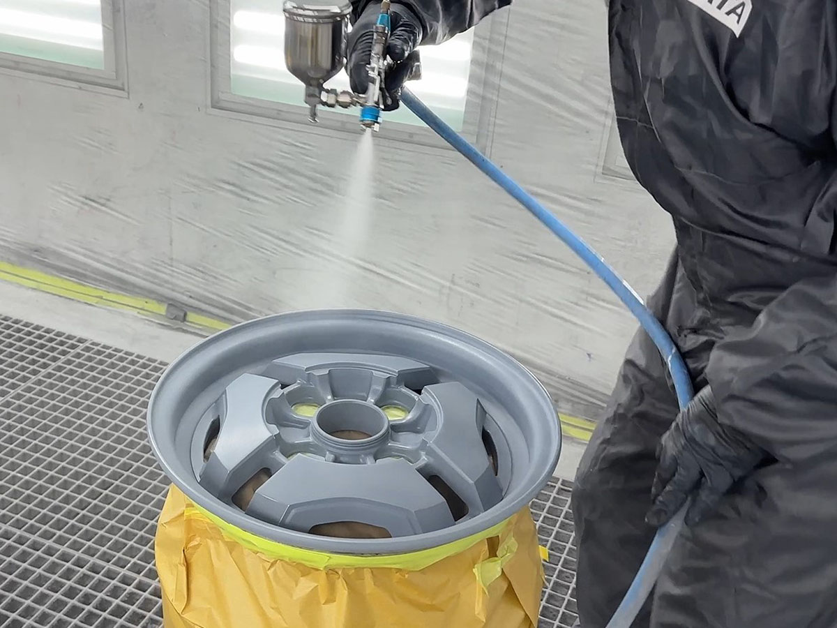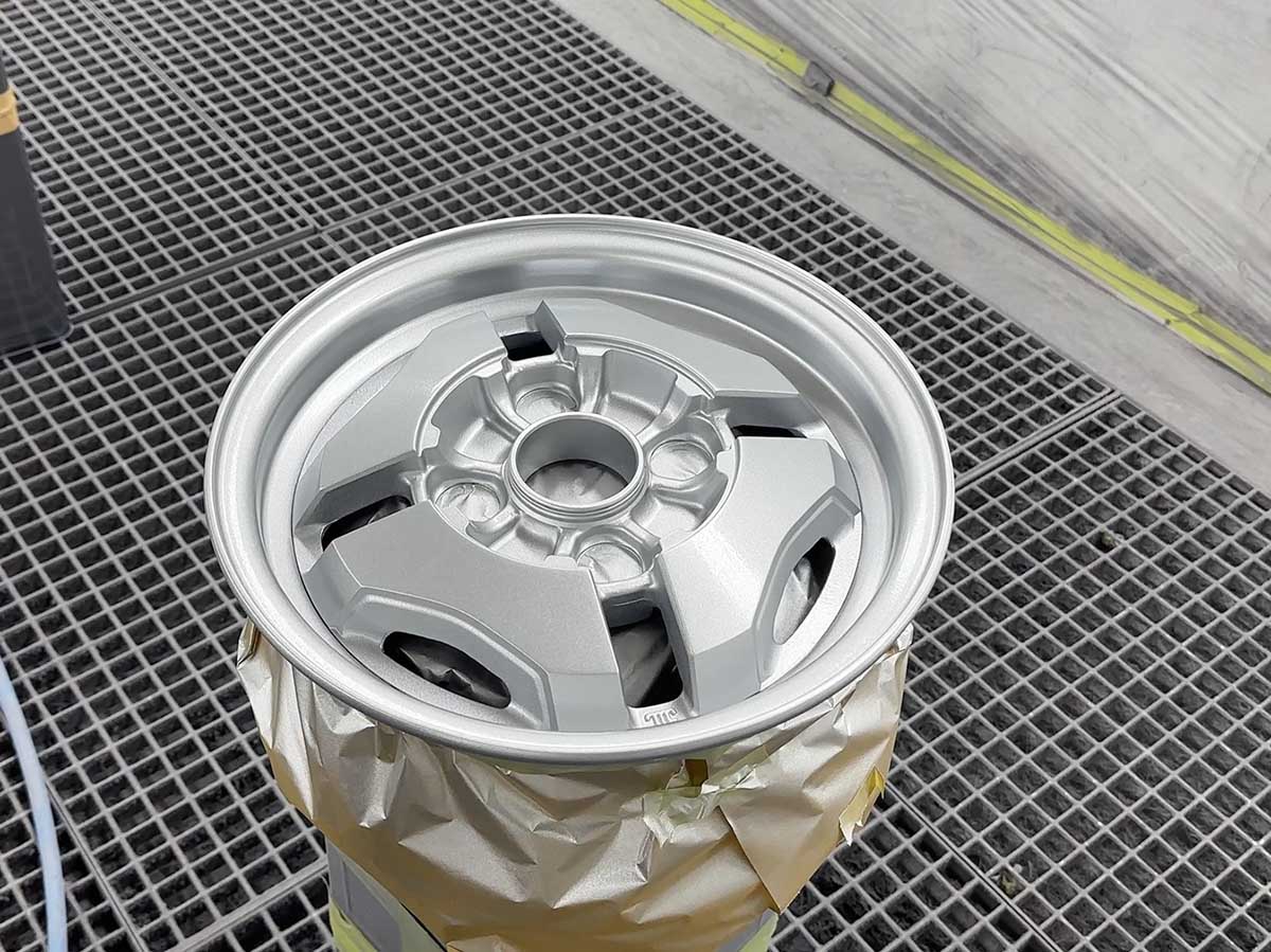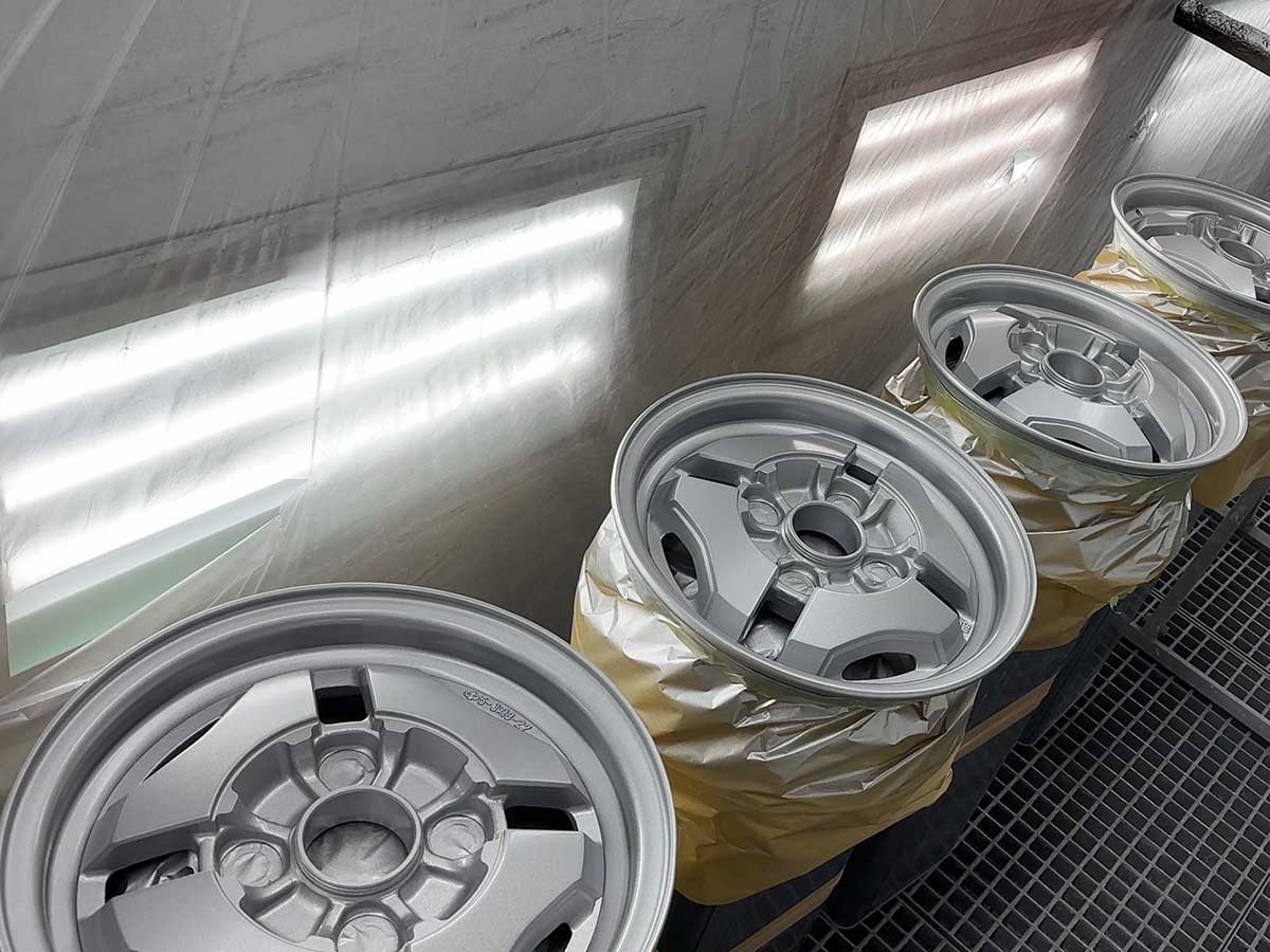 ホイールのカラー塗装は2度塗りで仕上げていきます。