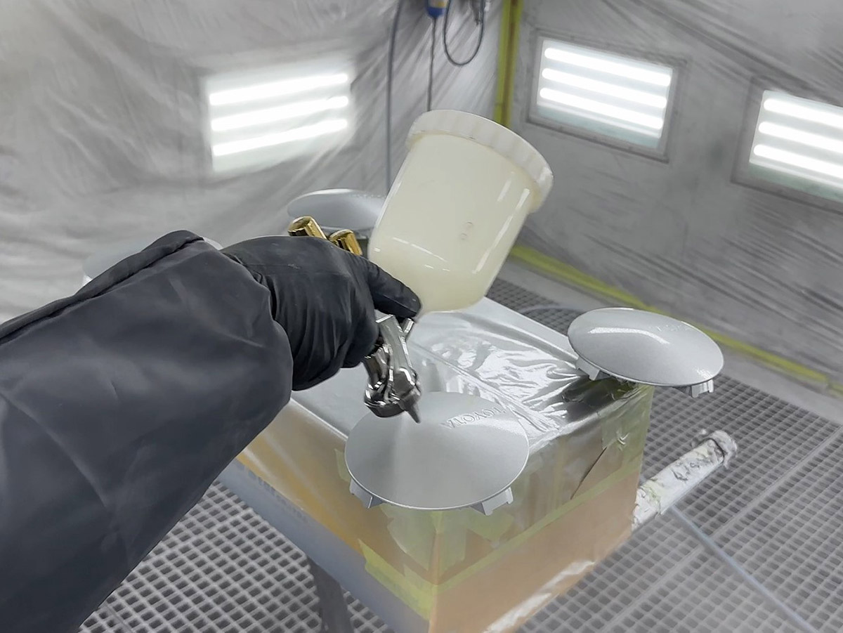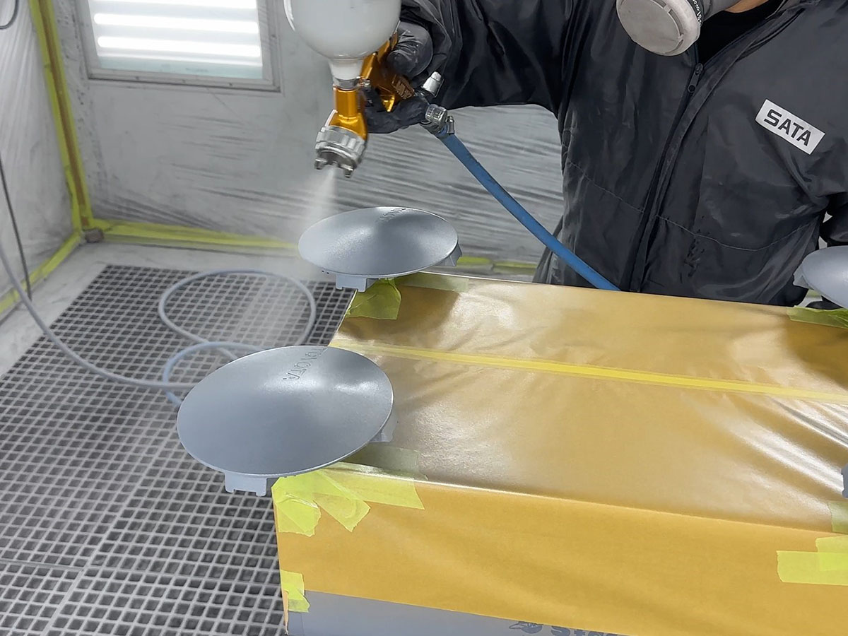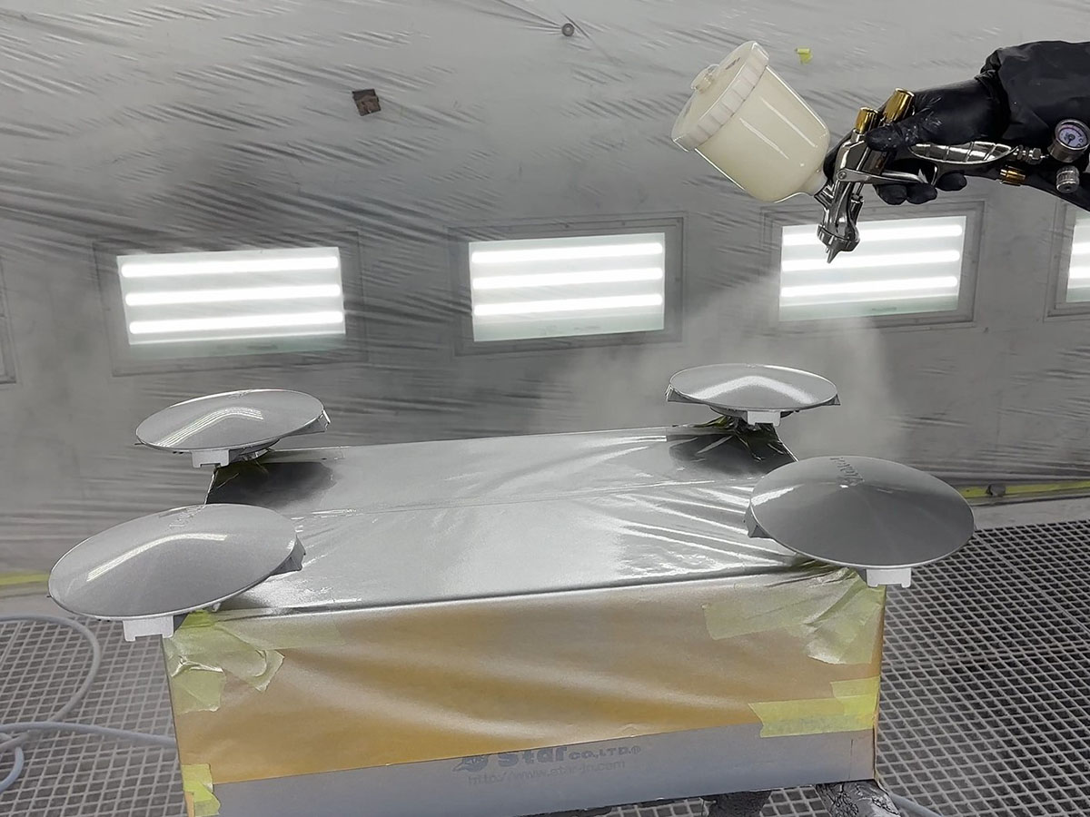 クリアー塗装もカラー同様、2度塗り4方向からしっかり且つ均一にスプレーしていきます。