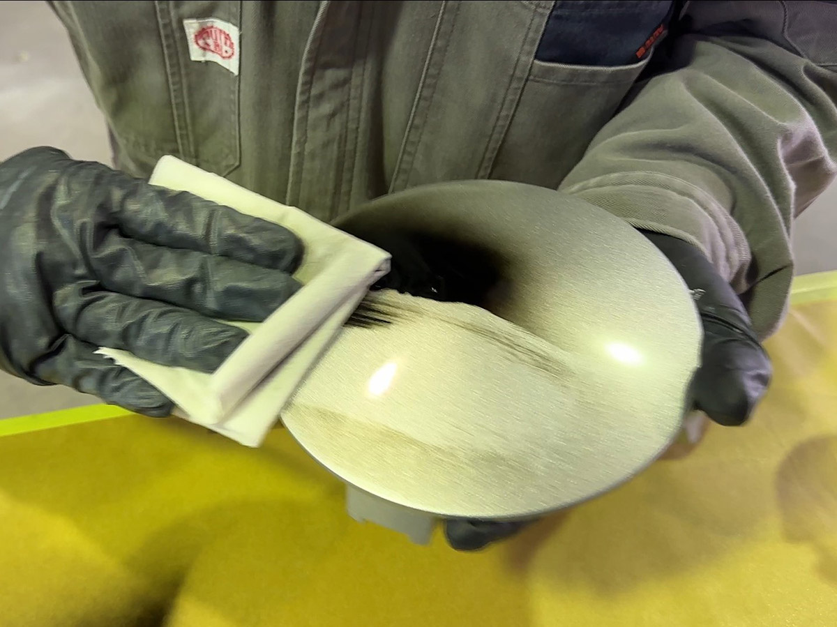 ここから、センターキャップ表面にスプレーされた塗料を溶剤で落としていきます。