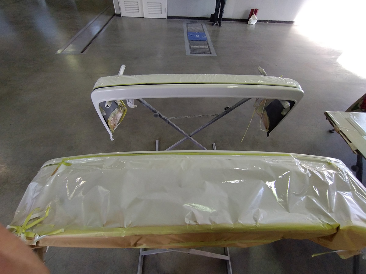 2度のクリアー塗装が終わり、ウインドウモールの塗装が完成しました。