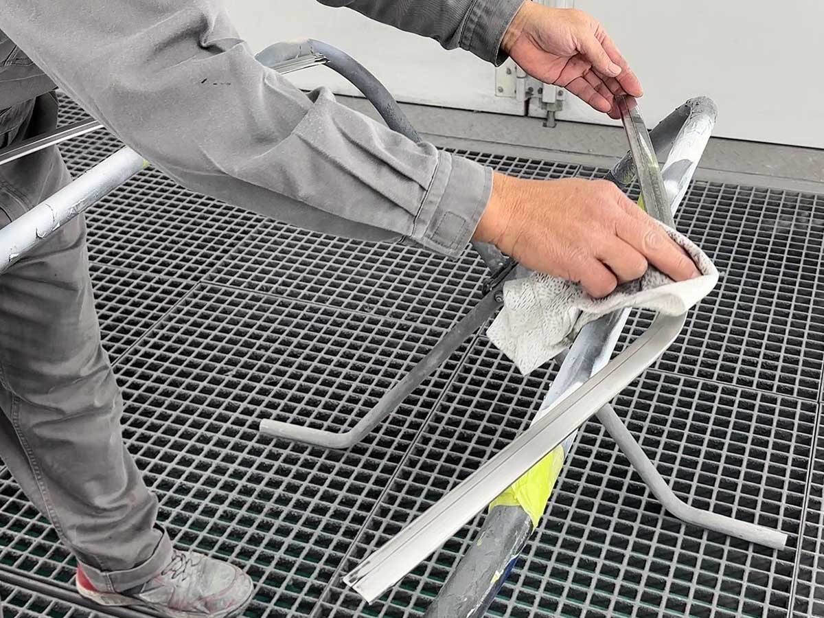 下地がアルミ素材のため、しっかりとプライマーを乗せていきます。