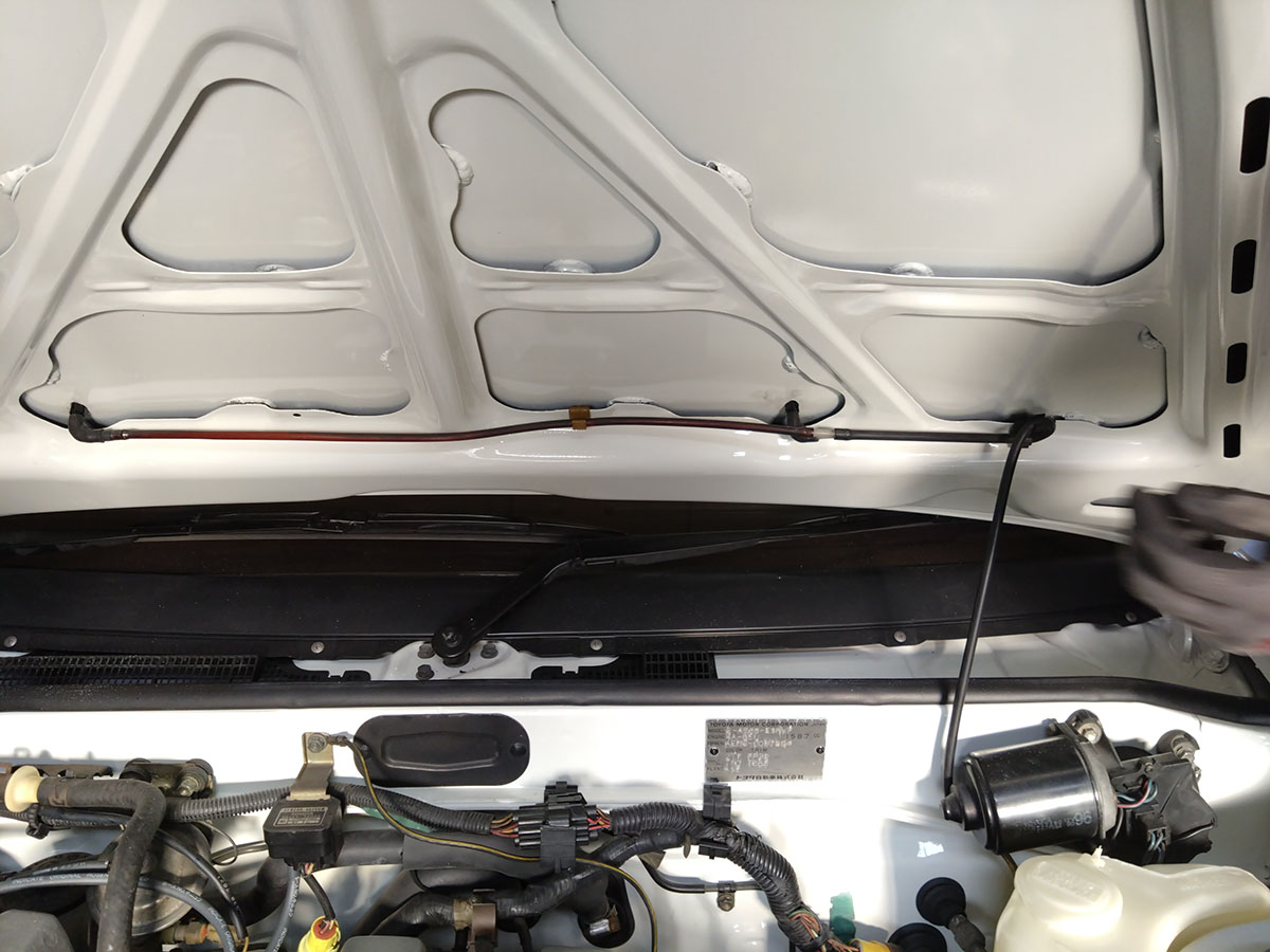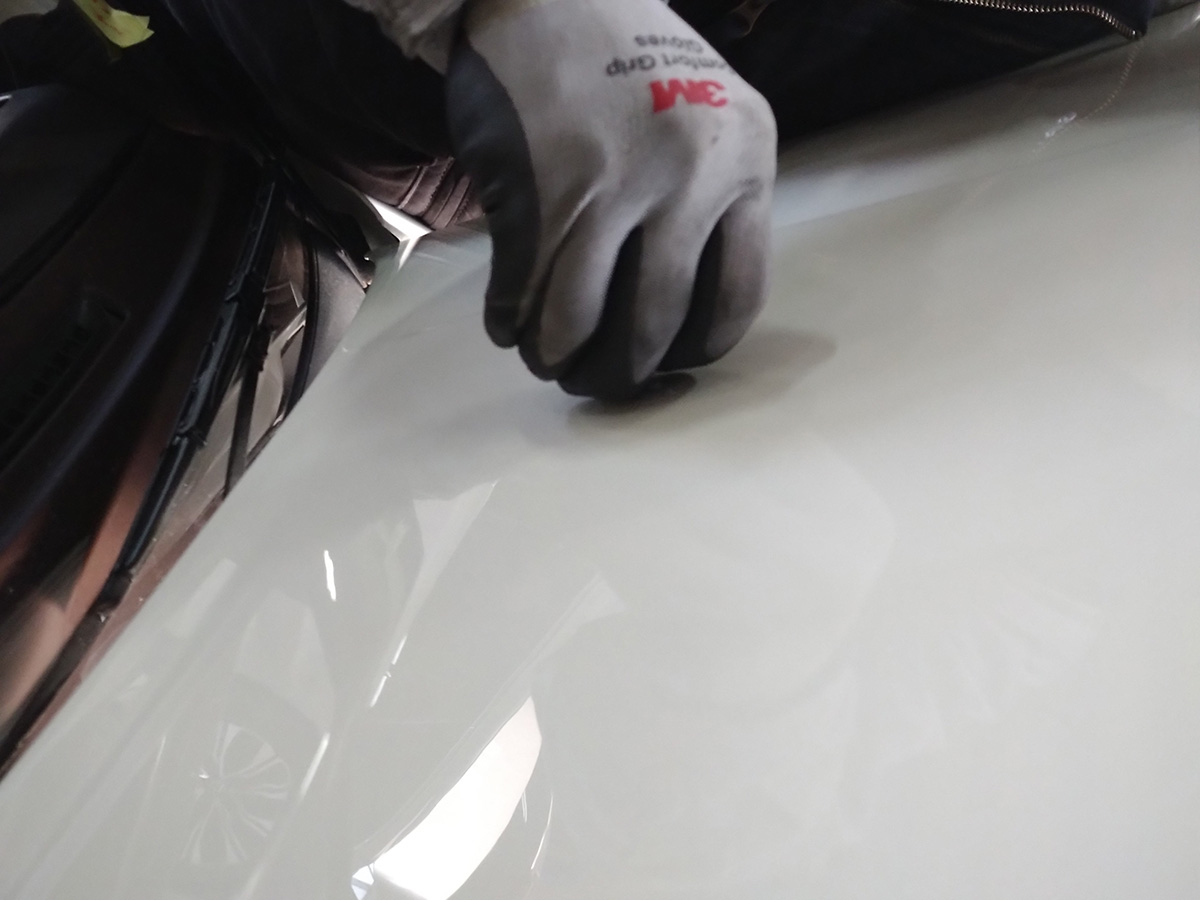 ウォッシャーノズルを取り付けるため、ボンネット塗装時少し塗料で厚みが出てしまった部分を削ります。