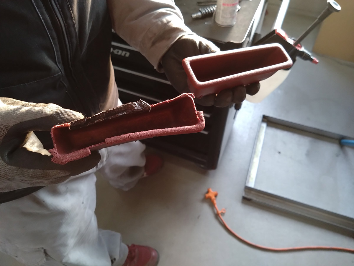 先程と同様新しい接着剤を盛り、クォーターガラスを設置