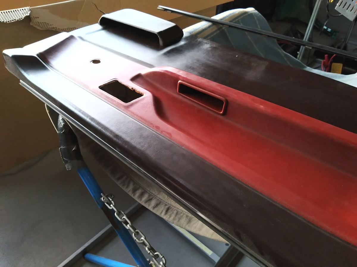 前回取り外ししたトランクステイカバーや塗り残していたモールもキレイに塗装が終了しています。