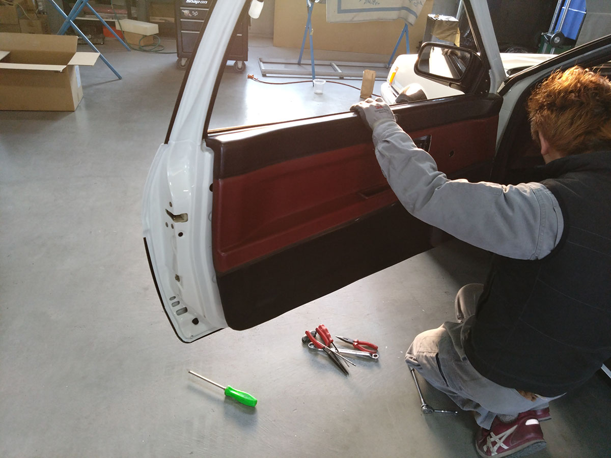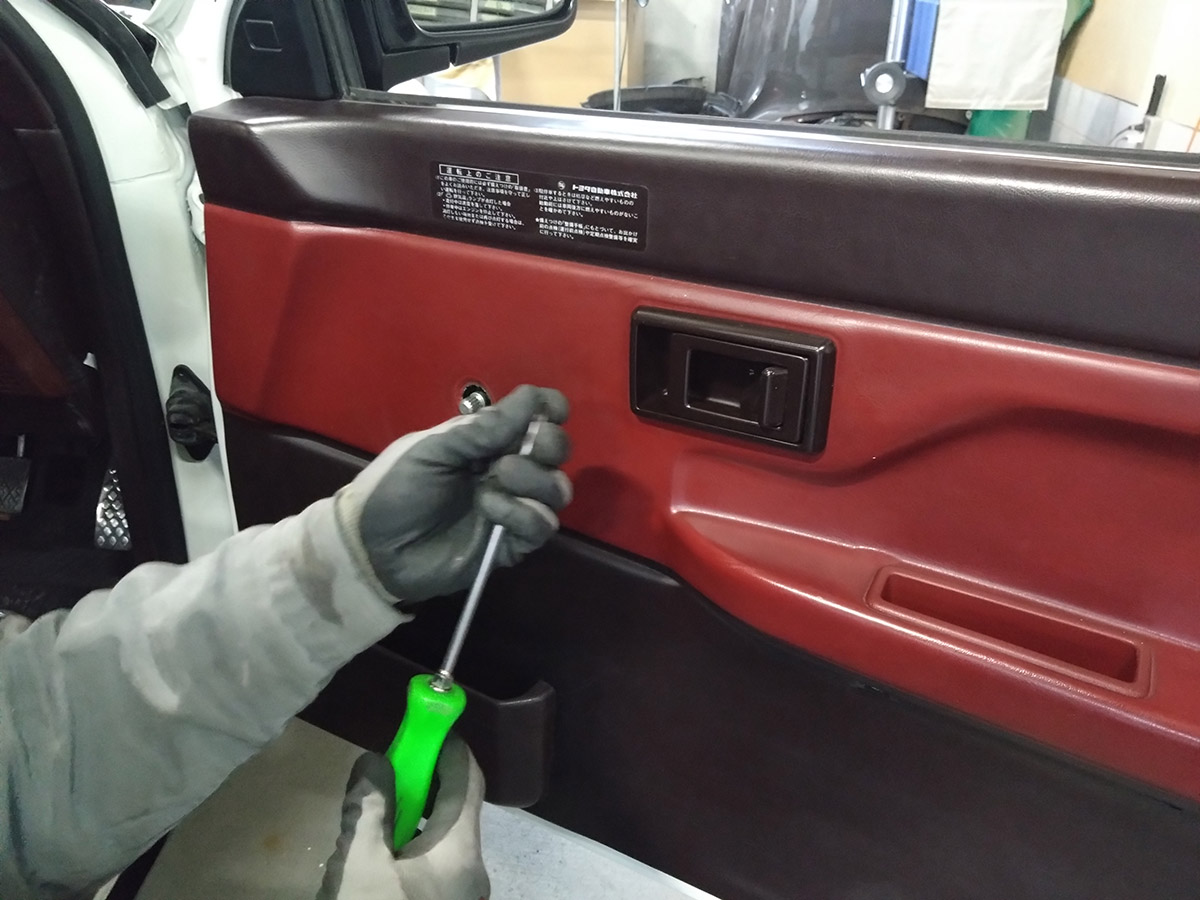 内装のアームレストポケットは純正品がありましたので、このタイミングで交換します。