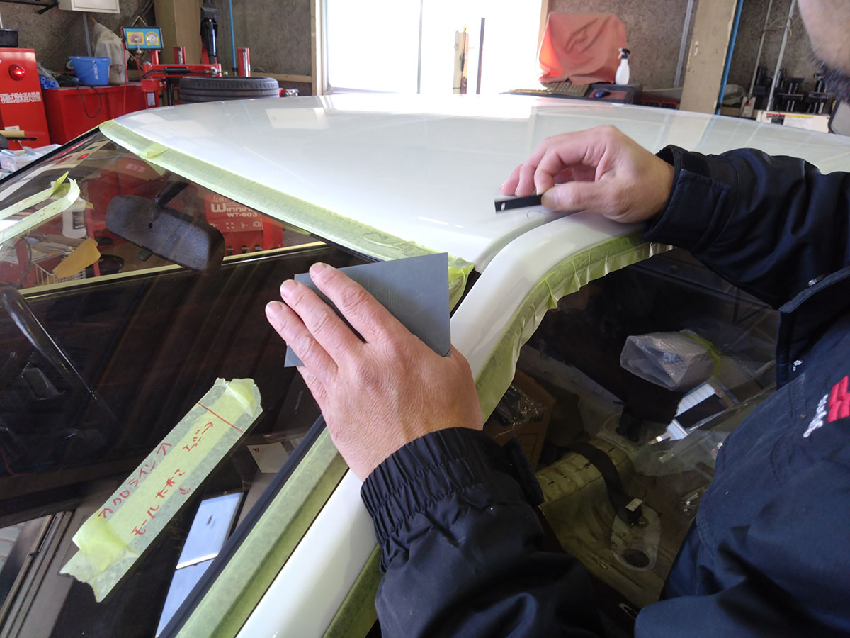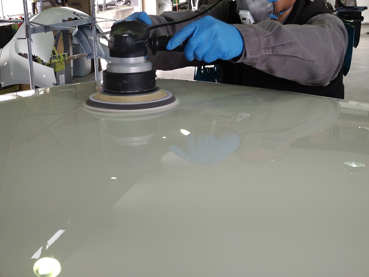 今回は外装の仕上げとして、塗装後の塗膜を均一にしていく研磨と、残っていた外装パーツのドアモールの取り付けを行っていきたいと思います。