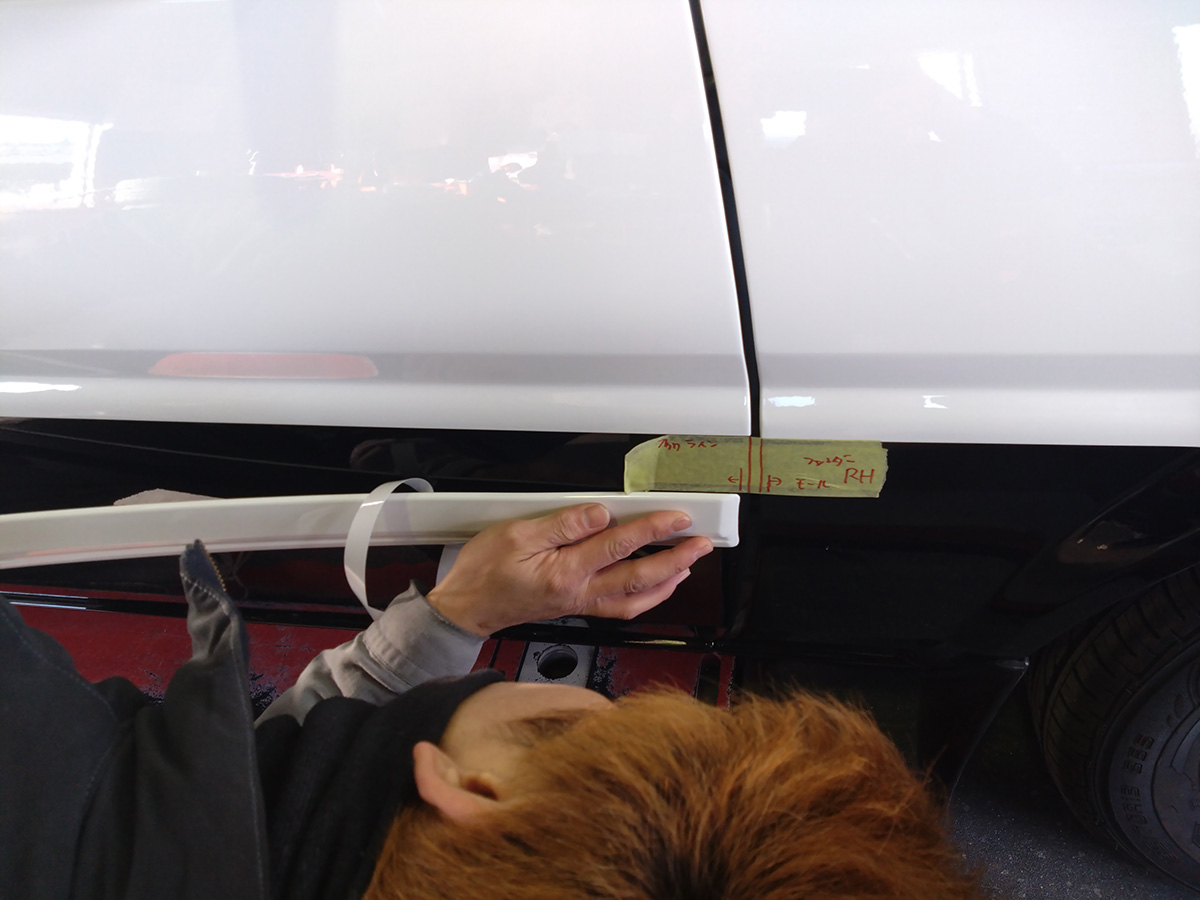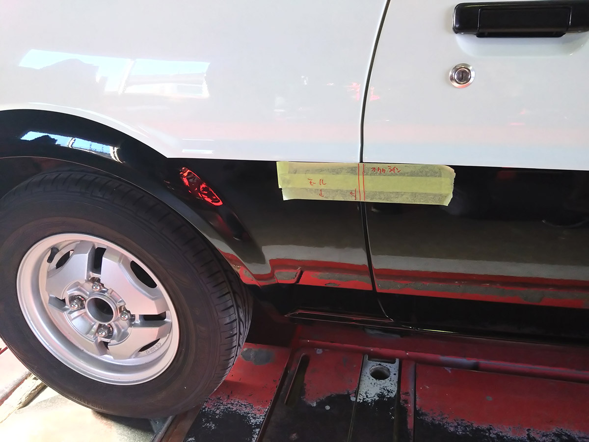うまくライン出しができ、ハイテックツートンのアクセントとしてのドアモールが復活しました。