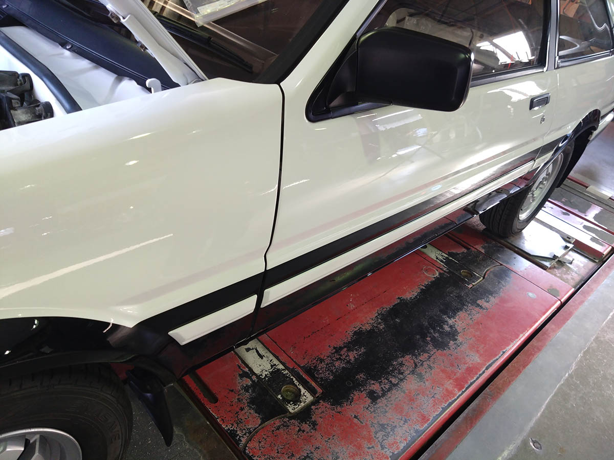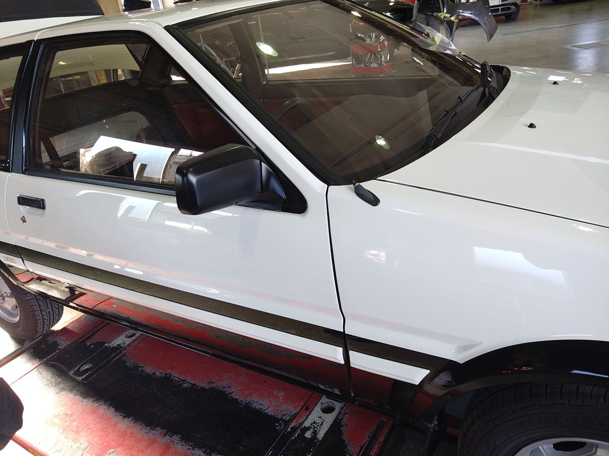皆さんこんにちは、前回キレイになったボディにこれまたキレイになったドアやボンネットなどの各種パーツを取り付け、「再生」の完成が見えてきた「トヨタ AE86(ハチロク)」。