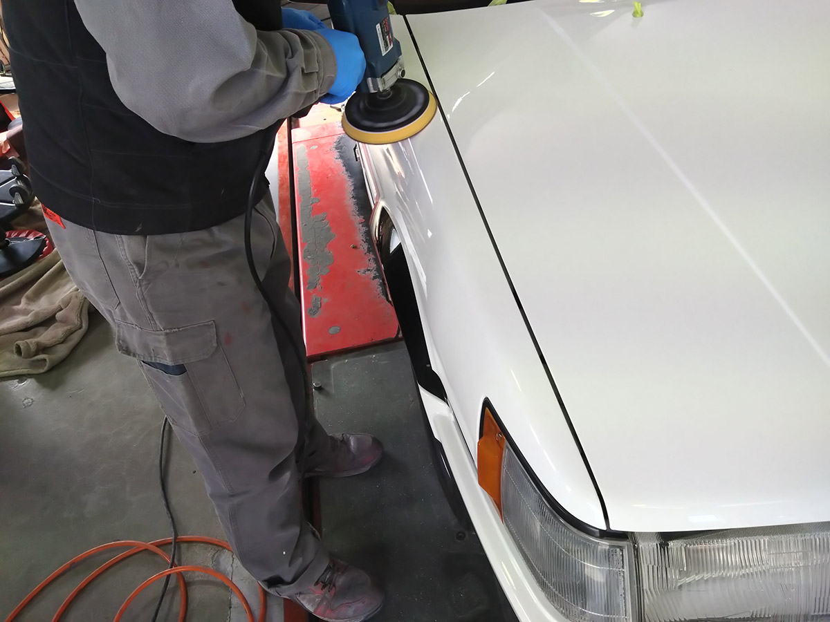 研磨した部分の削り跡も消えましたら、最後に塗装面全体を仕上げ用のコンパウンドを使って均一にしていきます。