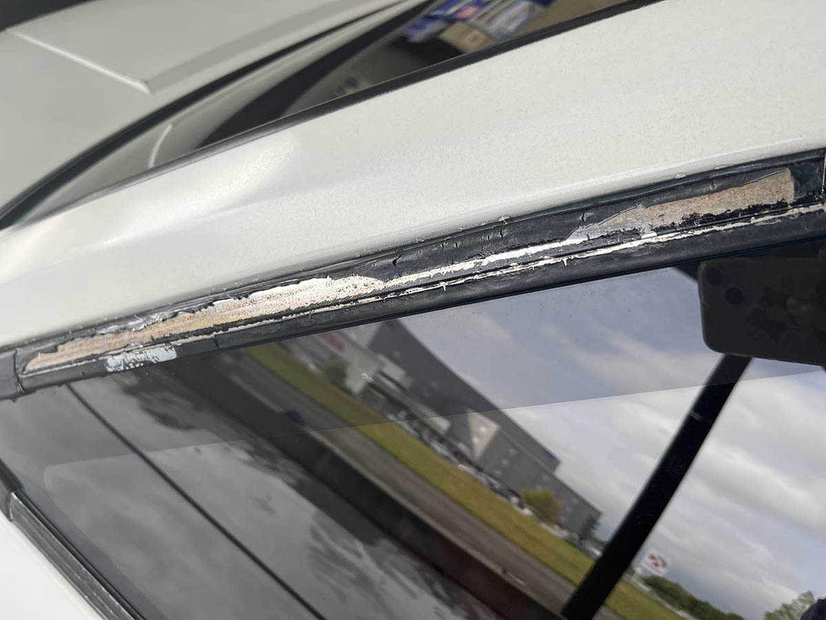 劣化が激しく、純正品が廃番で入手が困難なクォーターガラスモールも