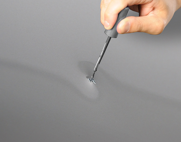 ガレージでの接触やいたずらなど、知らないうちについてしまったボディのへこみキズ。でも「99工房」なら、タッチアップペンを使った簡単ペイント補修で、ボディのへこみキズを、とりあえず隠せるレベルに直すことが可能です。