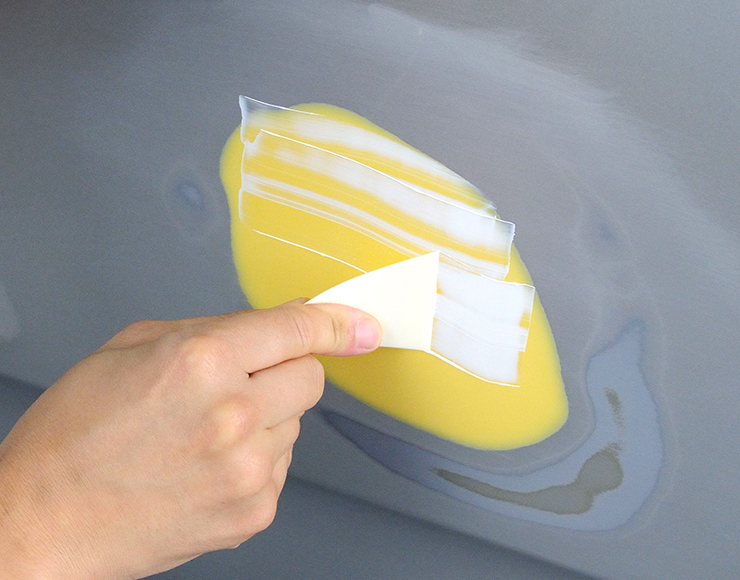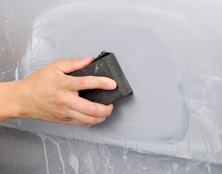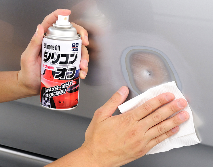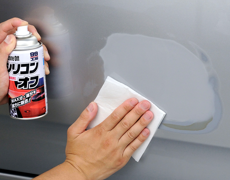 ペイント補修の大敵は油分です。塗装面に油分が残ったままだと、せっかく塗ったパテやペイントが後からはがれ落ちる原因になります。