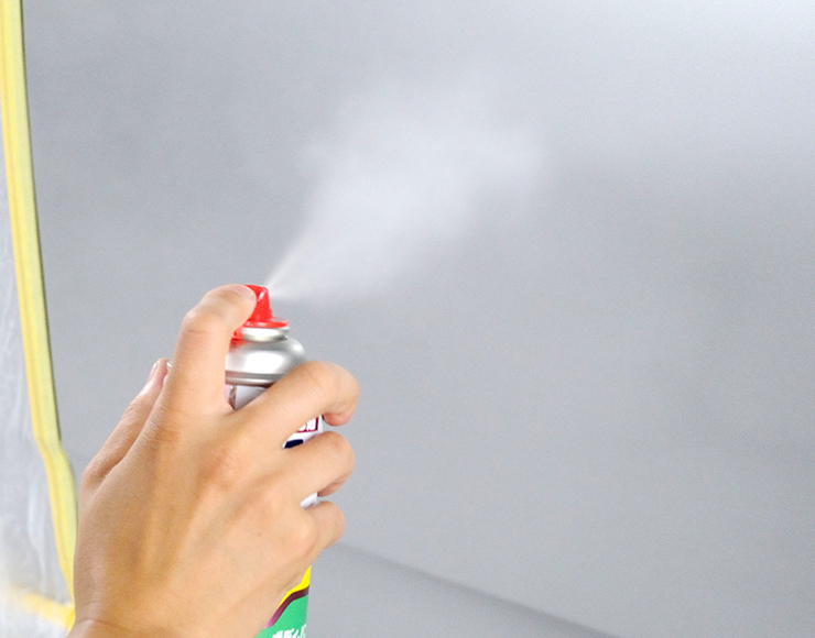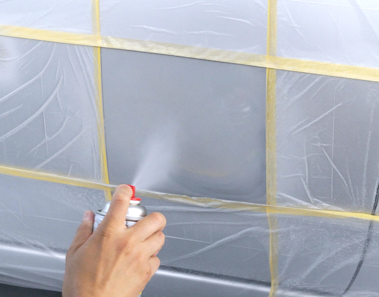 スプレー塗料はかなり飛び散るので広い範囲をマスキングしておきましょう。