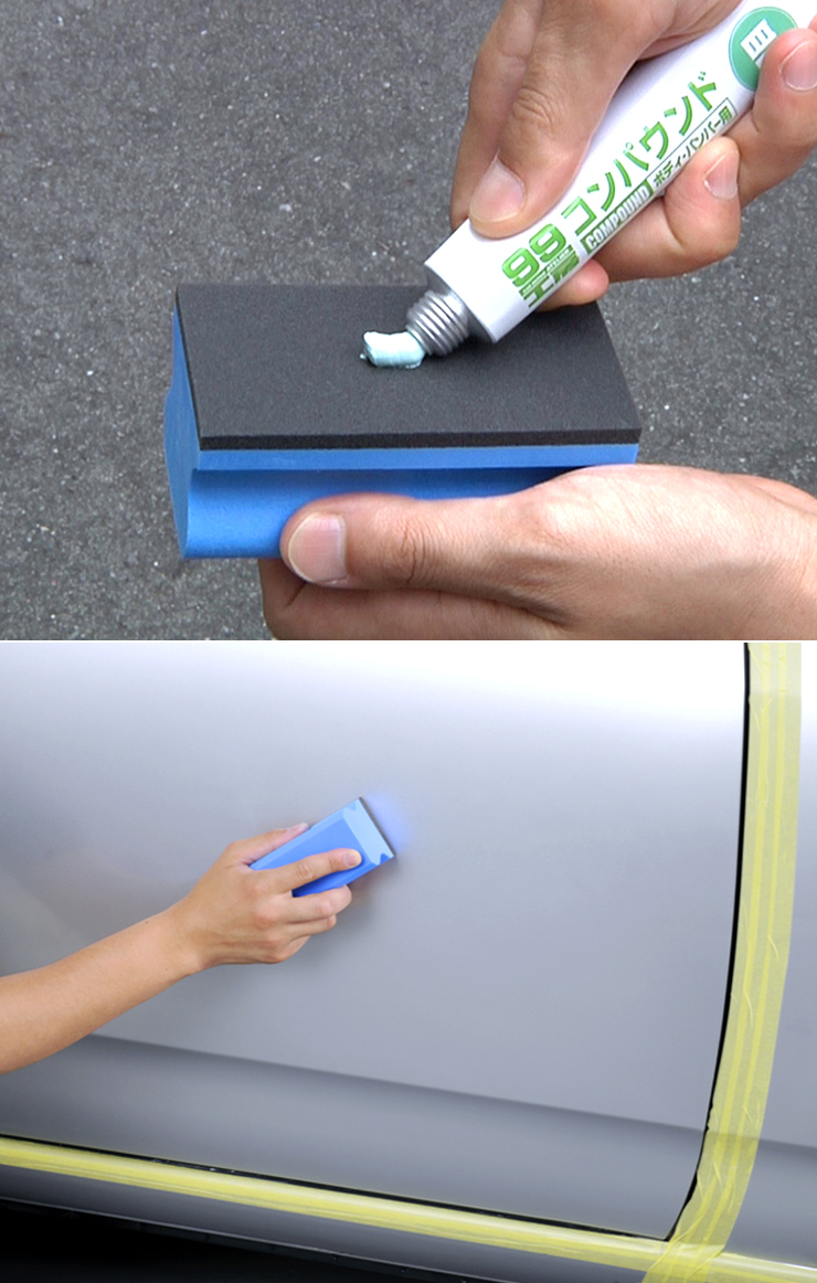 - ※2 種類の違うコンパウンドを同じスポンジで研磨作業してはいけません。目の細かな仕上げ用コンパウンドを使ってもスポンジに粗い研磨成分が残っていたら、うまく仕上がりません。