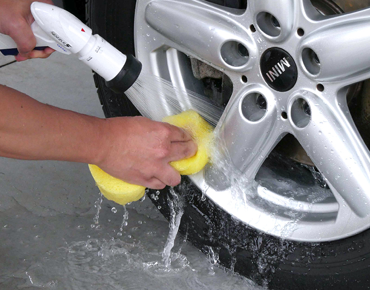 すすぎがじゅうぶんでないとホイールの白化や変色、シミの原因となることがありますので、注意してください。