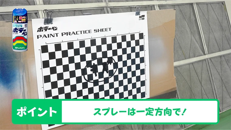 スギオカもう一点意識したいのが、スプレーする際は一定方向に塗装していくことです。左から右に塗装するならずっと左から右に向かって塗装していきましょう。