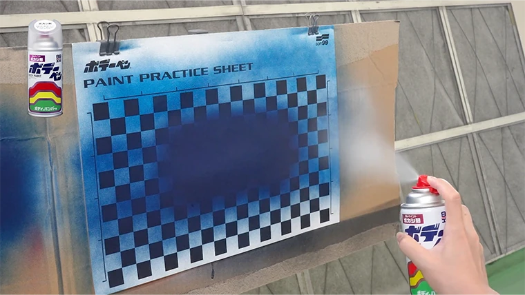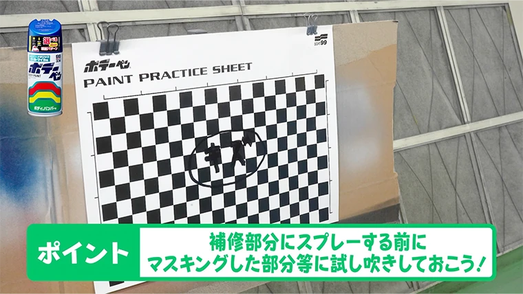 補修部分にスプレーする前にマスキングした部分等に試し吹きしておこう!