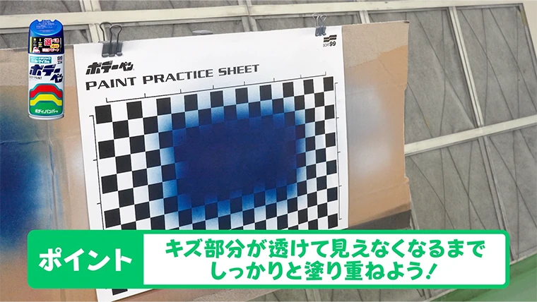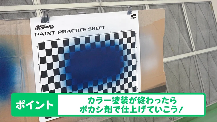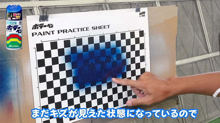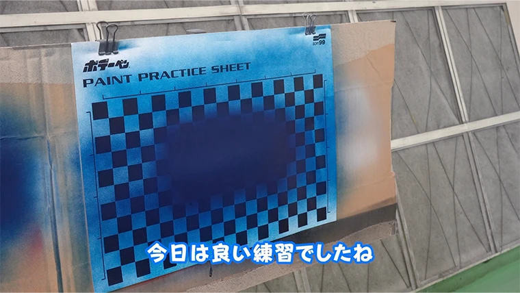 スギオカこれで塗装の練習は終了です。実際の塗装もこのようにキズをしっかり隠して、周りはボケたようにしていくので、今回の内容をしっかり復習しておきましょう。今日はいい練習でしたね。