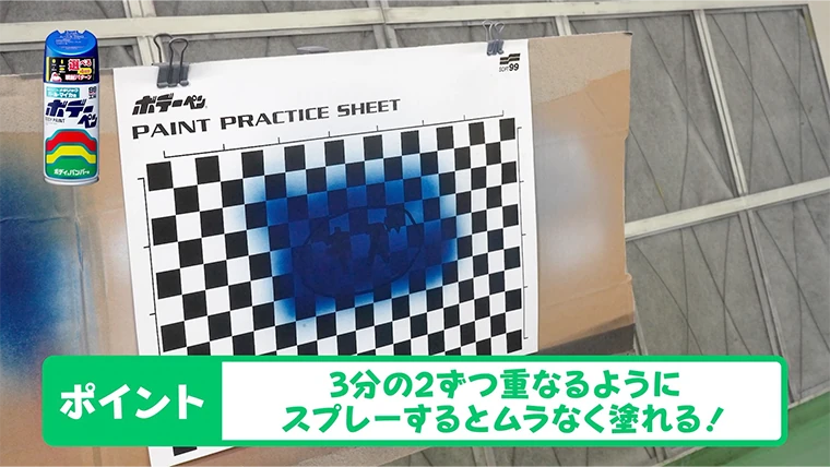 3分の2ずつ重なるようにスプレーするとムラなく塗れる!