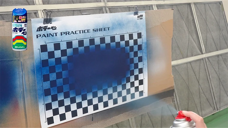 スギオカでは早速吹いていきたいんですが、塗装する際は軽くマスキングしたゾーンなどでしっかりとスプレーが出るか試し吹きをしておきましょう。