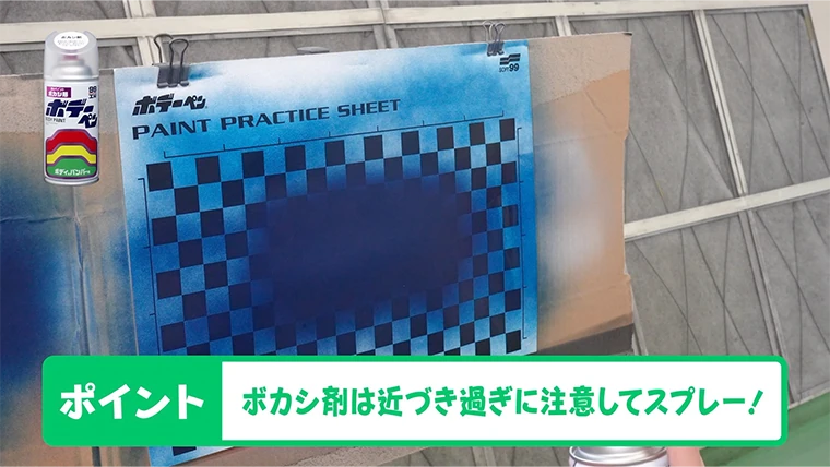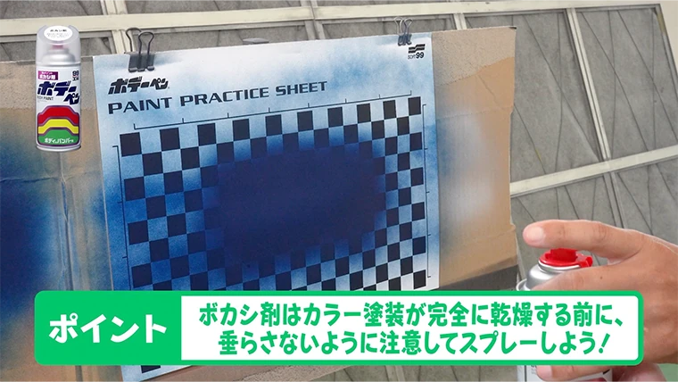 『ボデーペン ボカシ剤』はカラー塗装が完全に乾燥する前に、垂らさないように注意してスプレーしよう!